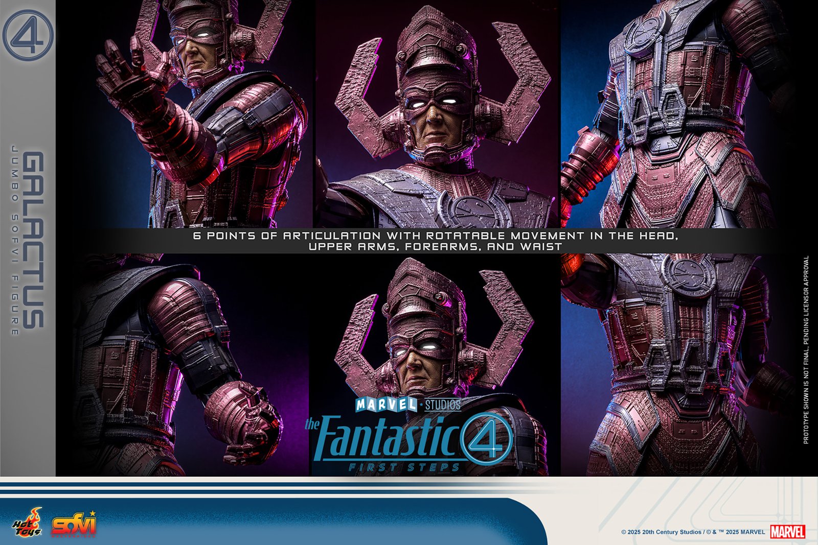 In The Fantastic Four: First Steps, Galactus emerges as a cosmic threat of an unimaginable scale, testing the Fantastic Four’s power and unity. His gigantic presence dominates the screen, and now it dominates your display shelf. Hot Toys introduces a new product line: Sofvi Masterpiece Series, which focuses on high-quality vinyl figures with unique artisanal charm. We are proud to present the Galactus Jumbo Sofvi Figure. Crafted from vinyl material, the figure stands an imposing 70cm tall with 6 points of articulation. His head, upper arms, forearms, and waist are rotatable for commanding display options. His head sculpt features LED-lit eyes that glow with cosmic energy, while finely painted metallic red and purple finishes bring his armor to vivid life.